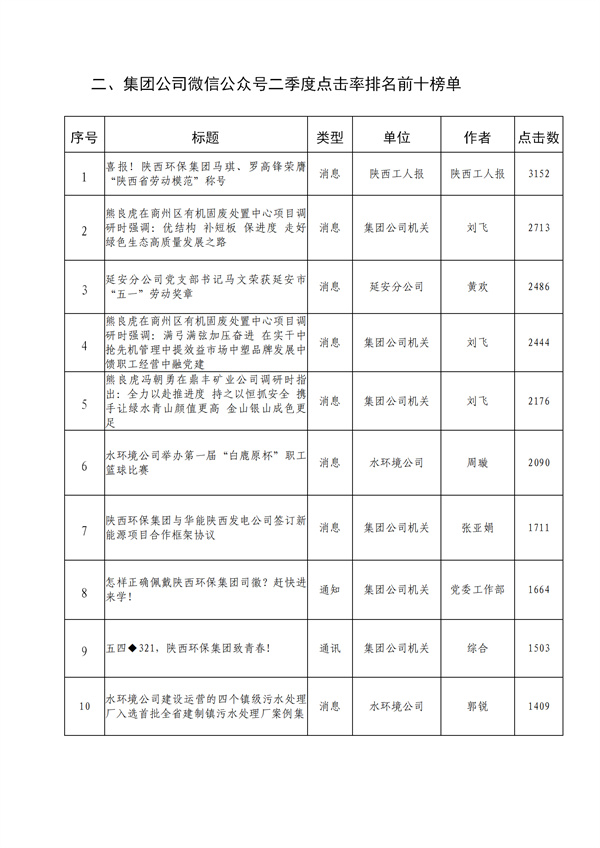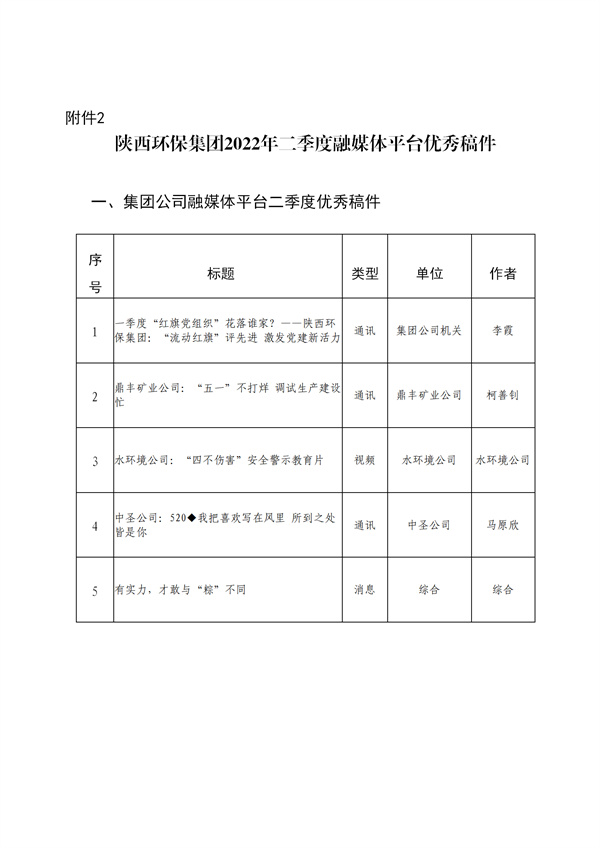 陜西環(huán)保集團2022年二季度融媒體平臺稿件采用及優(yōu)秀稿件評選情況通報