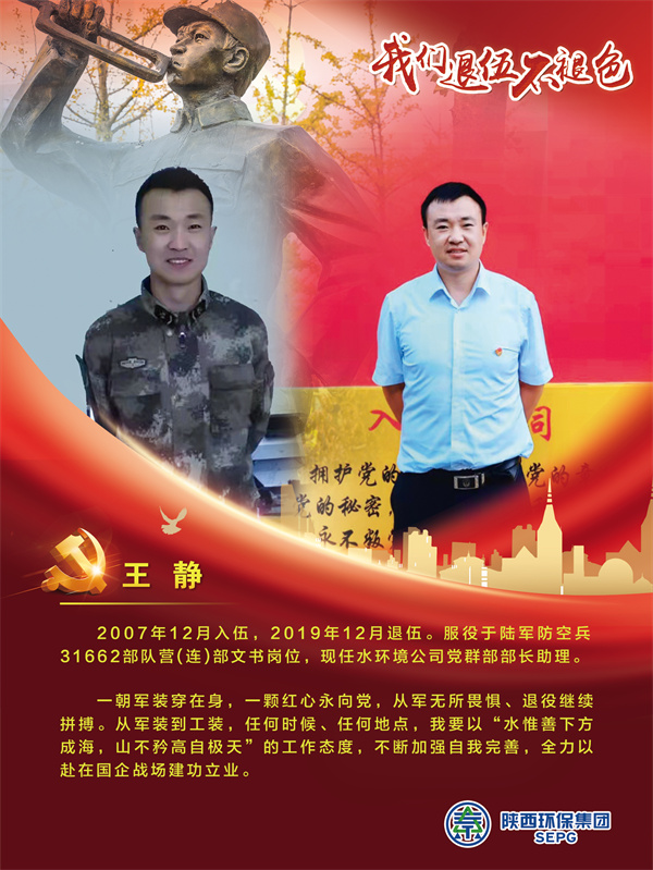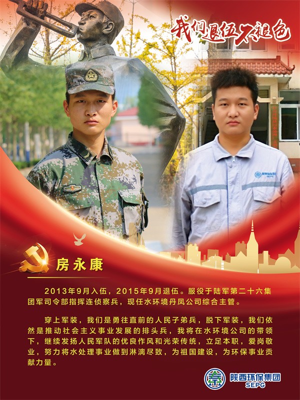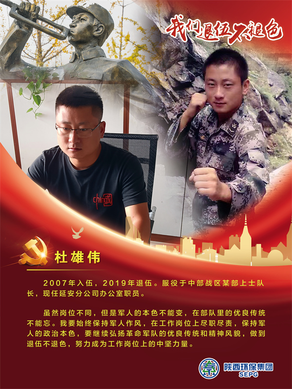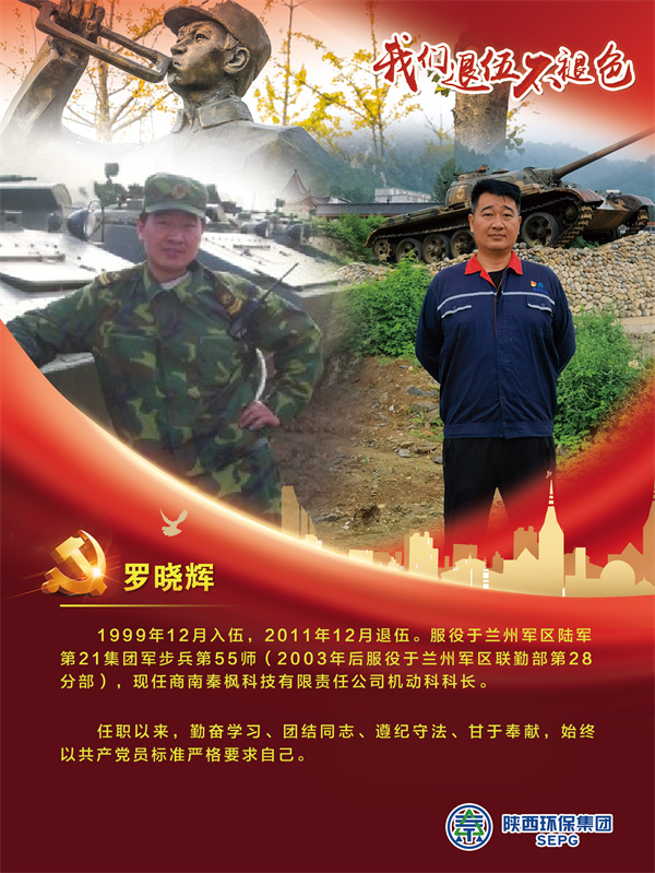 他們把青春的時光獻給軍營,揮灑青春、保家衛(wèi)國,如今他們帶著軍人的一腔熱血和優(yōu)良作風在陜西環(huán)保集團守護全省藍天、碧水、凈土的“保衛(wèi)戰(zhàn)”里續(xù)寫輝煌,制服的顏色變了,但為民的初心永不褪色。戎裝在身,他們保家衛(wèi)國;退役歸來,他們堅守崗位,用實際行動證明著退役不退志,退伍不退色。在第95個建軍節(jié)之際,陜西環(huán)保集團融媒體平臺用一張張海報向“老兵”致敬。