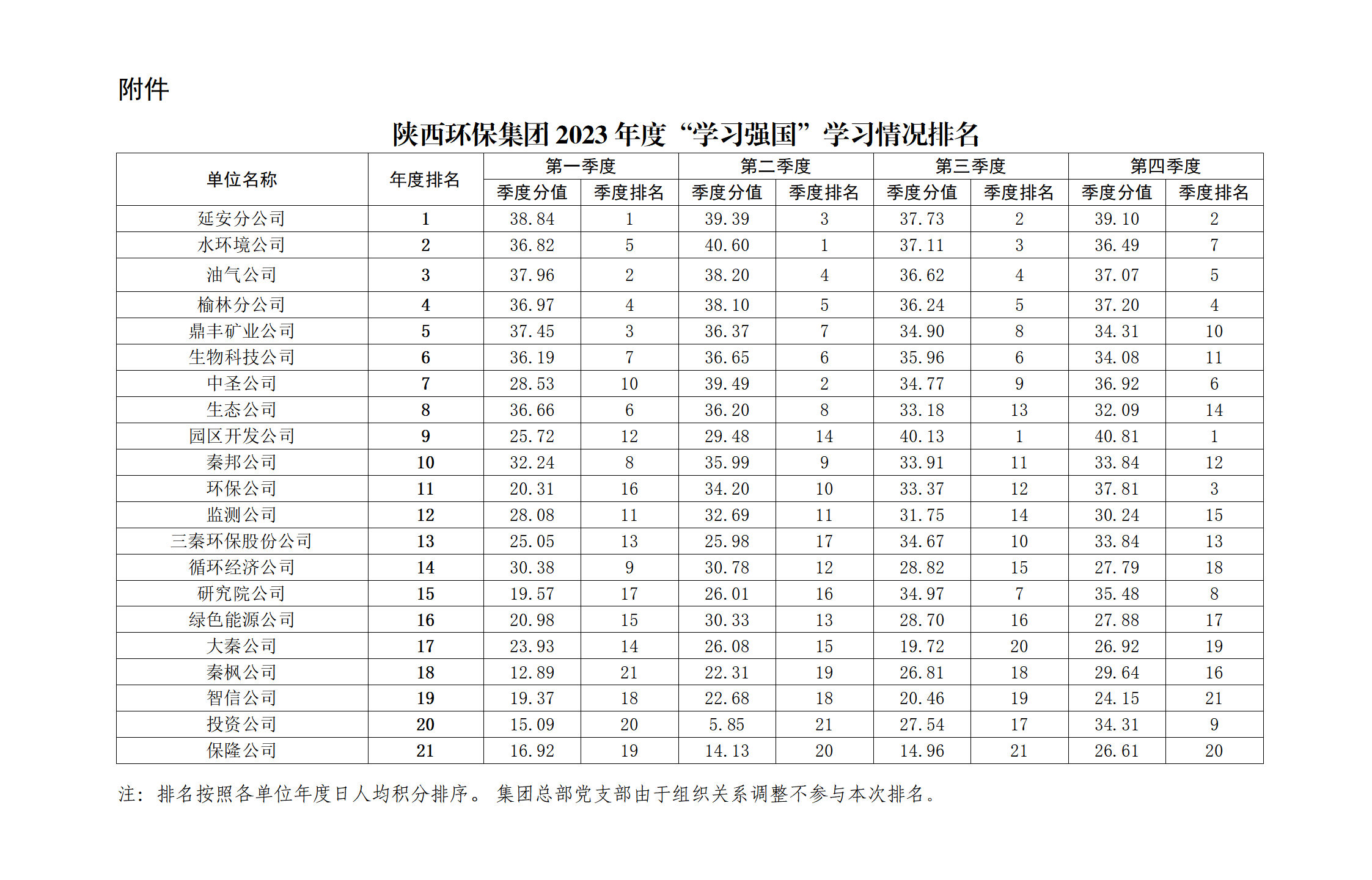 陜西環(huán)保集團(tuán)2023年度“學(xué)習(xí)強(qiáng)國”平臺使用情況通報