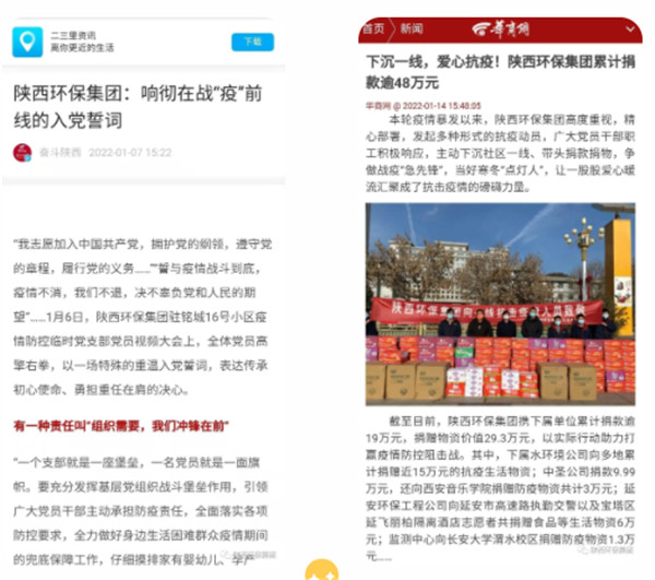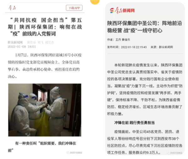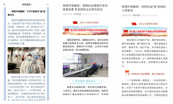 2022年1月1日、11日、12日,學(xué)習(xí)強(qiáng)國(guó)對(duì)陜西環(huán)保集團(tuán)沖鋒在一線的志愿者進(jìn)行報(bào)道。