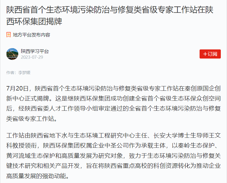 學(xué)習(xí)強(qiáng)國(guó)|陜西省首個(gè)生態(tài)環(huán)境污染防治與修復(fù)類省級(jí)專家工作站在陜西環(huán)保集團(tuán)揭牌