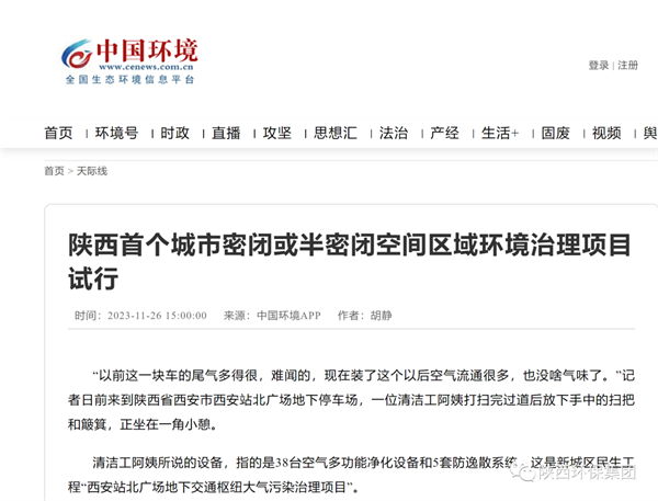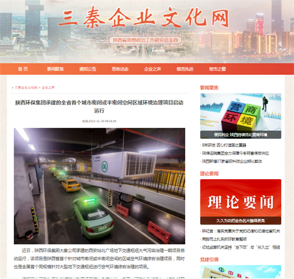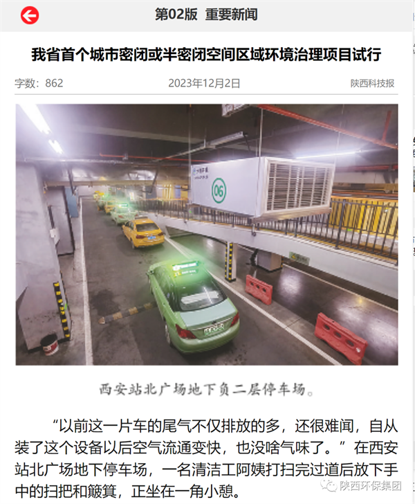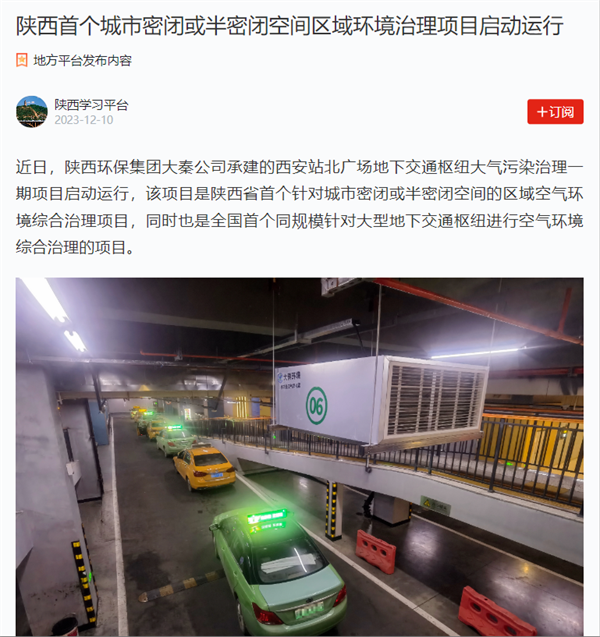 近日,學習強國、中國環(huán)境報、陜西科技報、三秦企業(yè)文化網(wǎng)、陜西國資等主流媒體對陜西環(huán)保集團大秦公司承建的全省首個城市密閉或半密閉空間區(qū)域環(huán)境治理項目“西安站北廣場地下交通樞紐大氣污染治理一期項目”大氣污染治理成效等情況進行了報道,現(xiàn)刊載如下,以饗讀者。