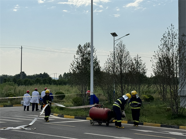 本次演練事故場景模擬1號暫存庫有機(jī)溶劑出庫時,由于碼放不穩(wěn)導(dǎo)致有機(jī)溶劑泄漏、起火、人員受傷事故,根據(jù)事故的發(fā)展情況,先啟動III級應(yīng)急響應(yīng)后啟動II級公司級應(yīng)急響應(yīng)的事故場景。演練中,各演練小組充分發(fā)揮各自職能,做到了思想統(tǒng)一、職責(zé)明確,服從指揮,整個演練緊張有序,效果顯著。